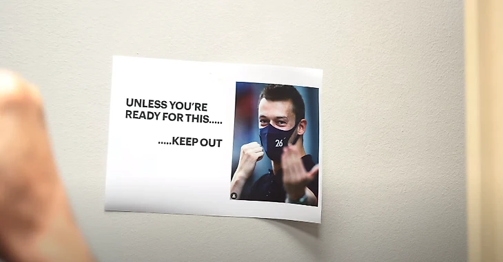 У комнаты Квята в паддоке тоже есть секрет – особое предупреждение не беспокоить.