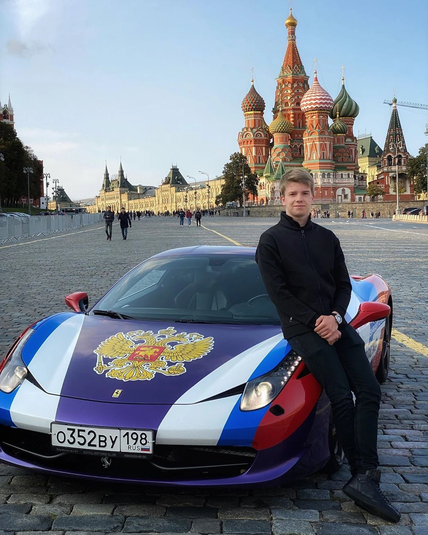 Суперталант «Феррари» из Питера ездит на суперкаре за 200 тысяч долларов. С огромным российским гербом на капоте