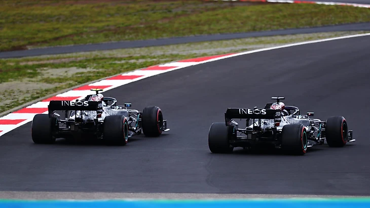Мерседес. Когда надо было, Льюис выдавал лучший круг и уезжал от Ферстаппена. Когда можно было, Валттери снова не выиграл.