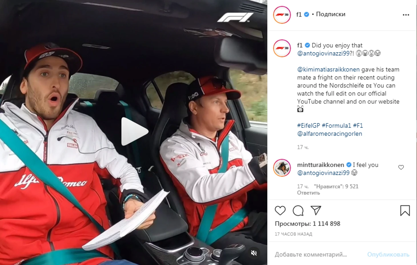 Но, кажется, Айсмен на самом деле гоняет так всегда – поскольку жена Кими Минтту тут же посочувствовала Джовинацци в комментариях.