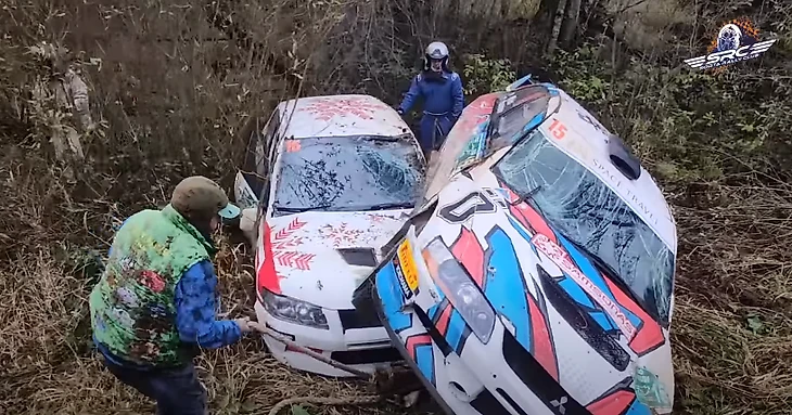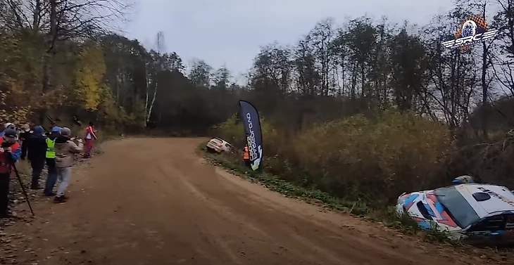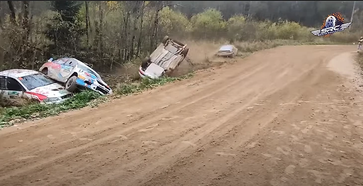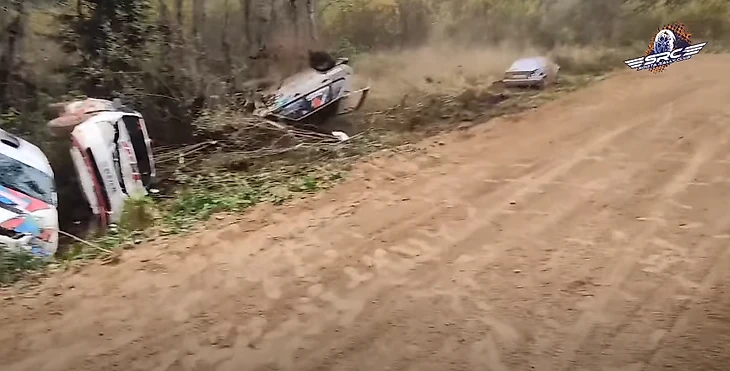 На ралли в России в один и тот же кювет улетели шесть машин. Подряд – одна за другой!