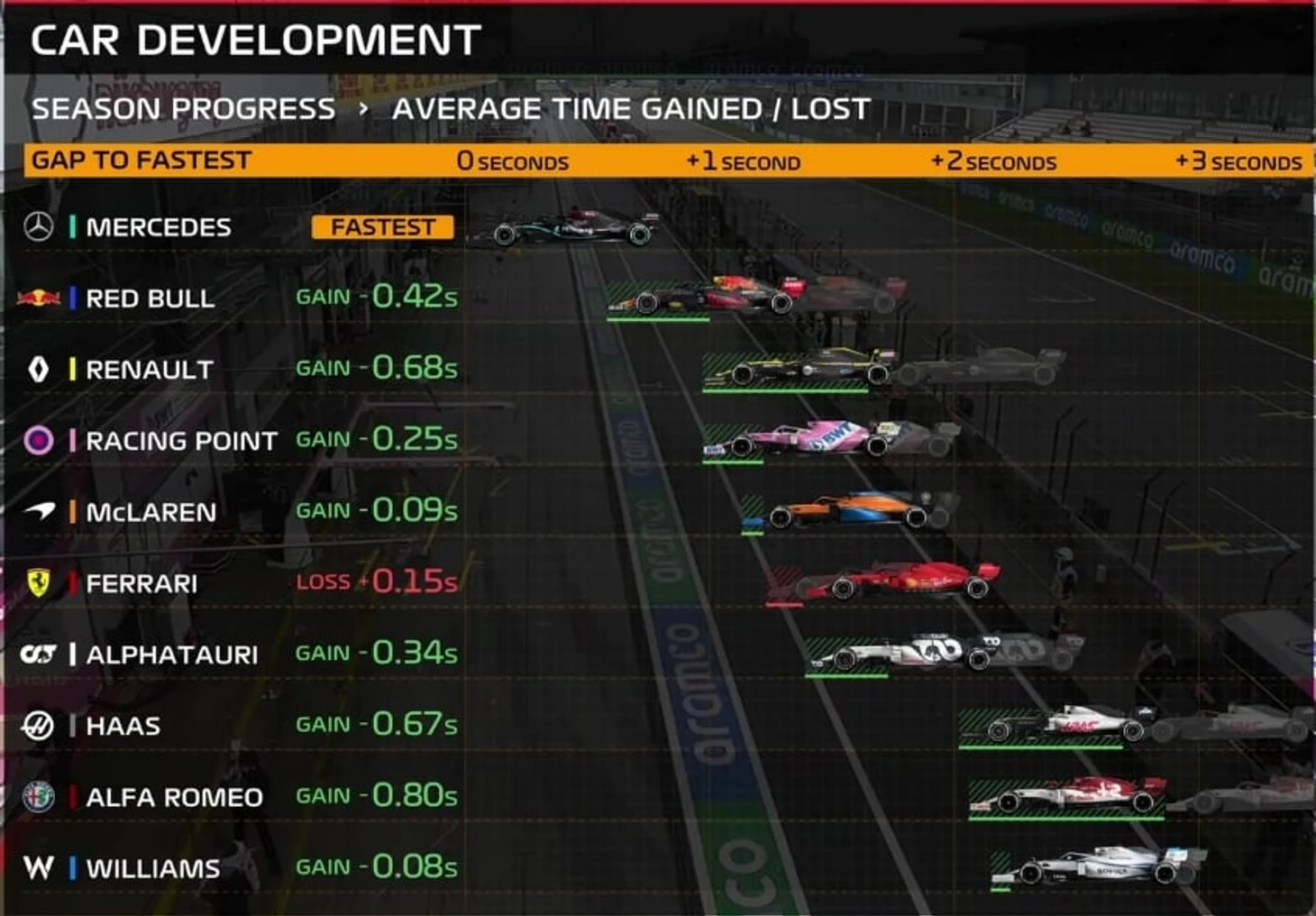 То есть хоть итоговый регресс и составил где-то 0,1 секунды, но реально относительно соперников он оказался намного больше. Все-таки конкуренты англичан тоже не стояли на месте и развивали болид.
