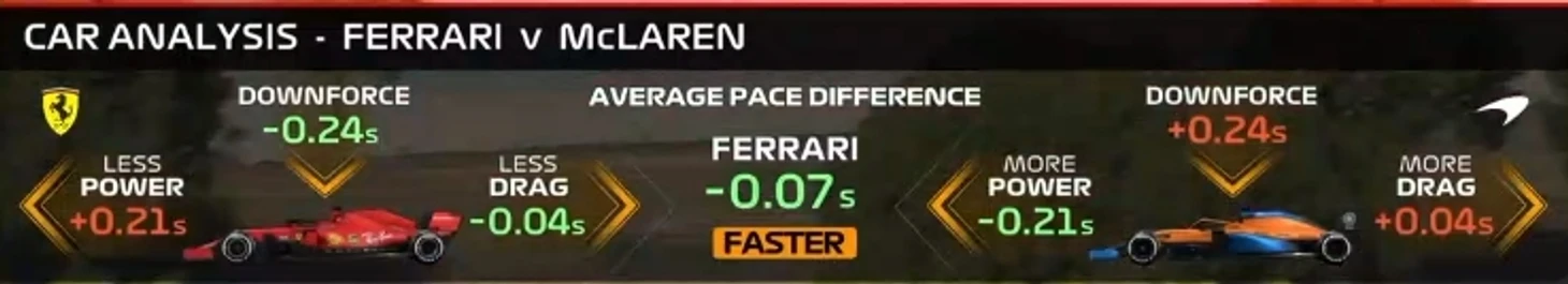 Но прошло всего несколько этапов – и «Макларен» внезапно потерял и третью строчку в Кубке конструкторов, и четвертую – в общем зачете, и даже титул самой прогрессирующей команды пелотона. Более того, теперь оранжевая машина – единственная замедлившаяся после 11 Гран-при относительно «Мерседеса»: именно это и показала графика от «Формулы-1», основанная на расчетах вместе с AWS.