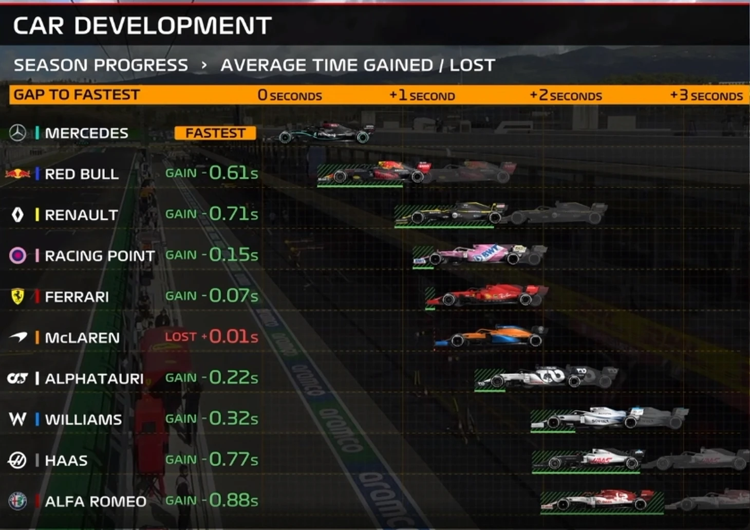 Особенно сильно по амбициям легендарной организации из Уокинга бьет динамика: еще две недели назад они даже опережали чемпионов по темпам развития – хоть и не сильно намного.