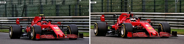 Однако на самом деле все не настолько просто. У каждого случая такой вот победы Леклера над Феттелем есть одна общая деталь: разные настройки болида. Начиная с Гран-при Бельгии, №16 каждый раз получает аэродинамический обвес, генерирующий меньше прижимной силы (особенно в задней части), а болид под №5 нагружают сильнее.