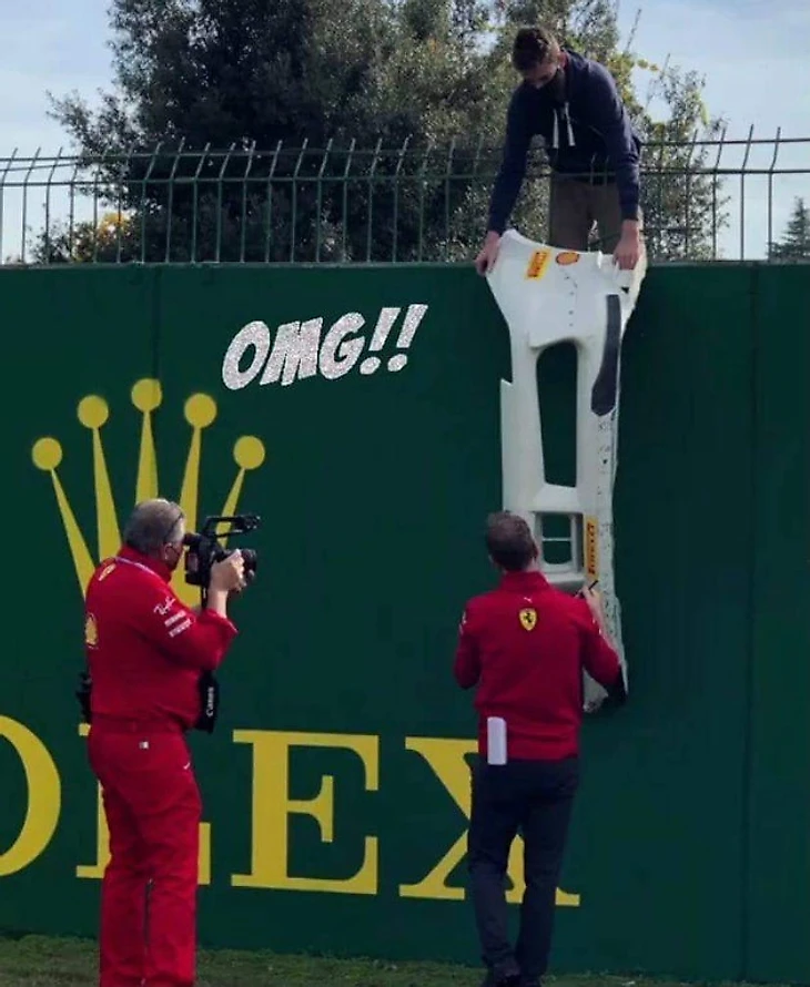 Фанат перелез через четырехметровый забор ради автографа Феттеля. На сломанном бампере от суперкара за €250 тыс