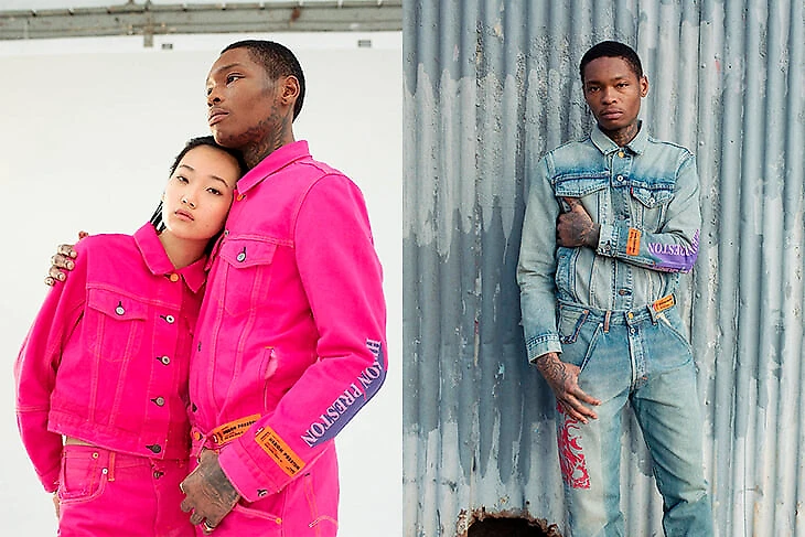 В линейке есть и более спокойные цвета – обычные джинсовые оттенки. Но Льюис выбрал именно яркий комплект.