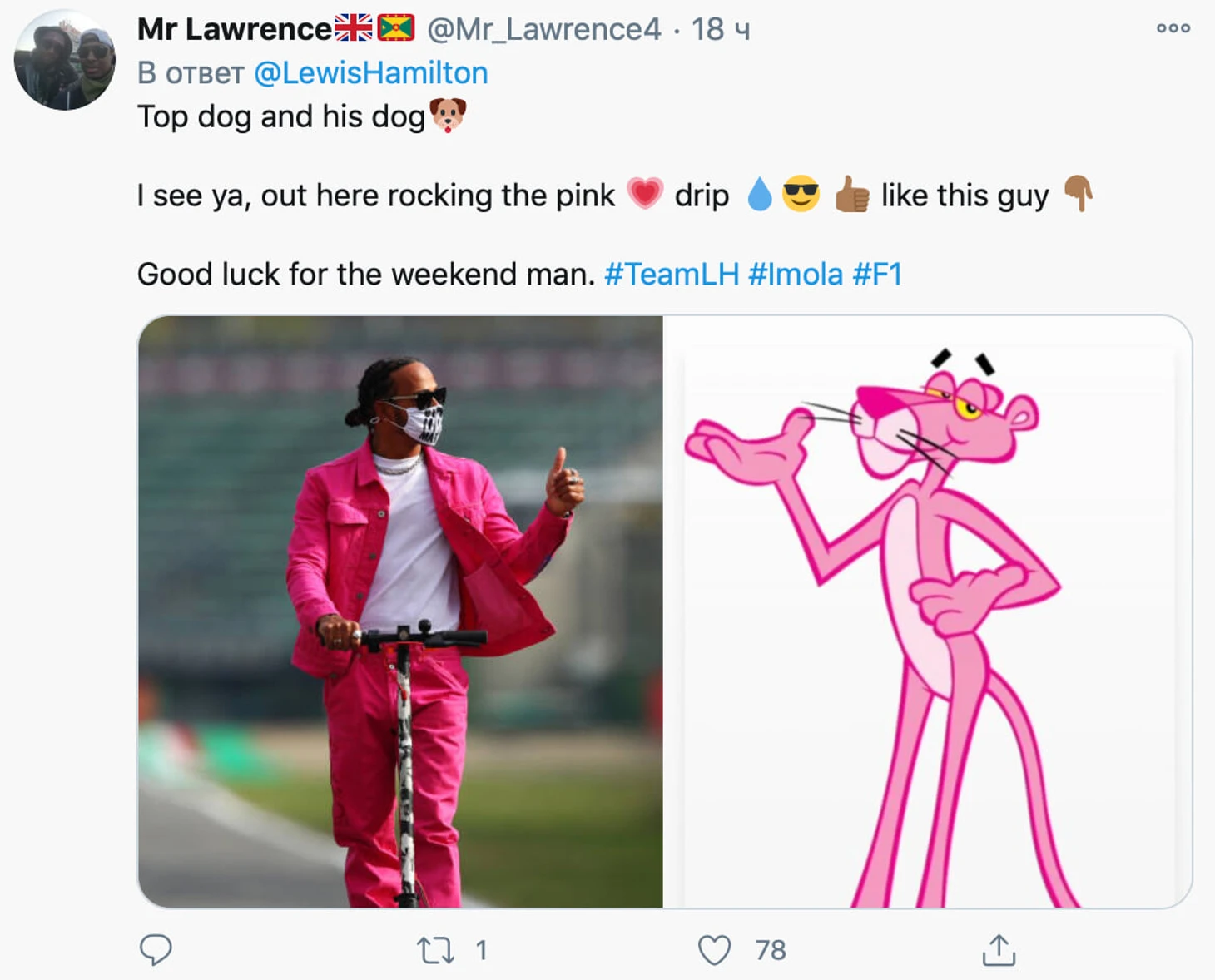 Хэмилтон взорвал соцсети розовым нарядом на Гран-при в Имоле. Хейтеры твердят: «Сенна такое никогда бы не надел»