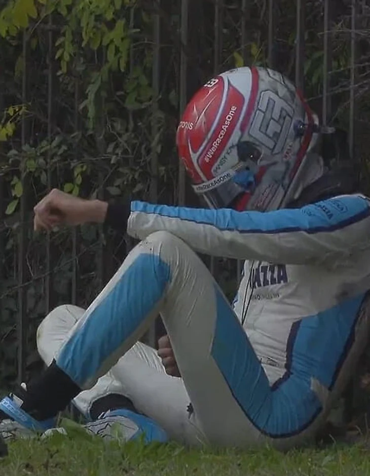 Однако буквально через несколько секунд после получения заветной позиции вся «Формула-1» увидела невероятную по нелепости аварию.
