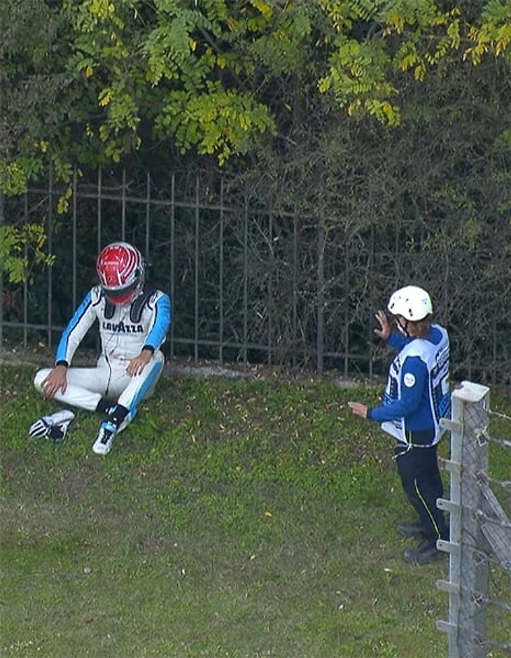 Джордж разбил белый болид о барьеры при попытке удержать температуру в шинах, вылез – и грустно сел у барьеров. Судя по всему, эмоции парня просто перехлестнули – по тому, как он отказался от помощи маршала, комментторы сделали вывод, что Расселл мог и пустить слезу.