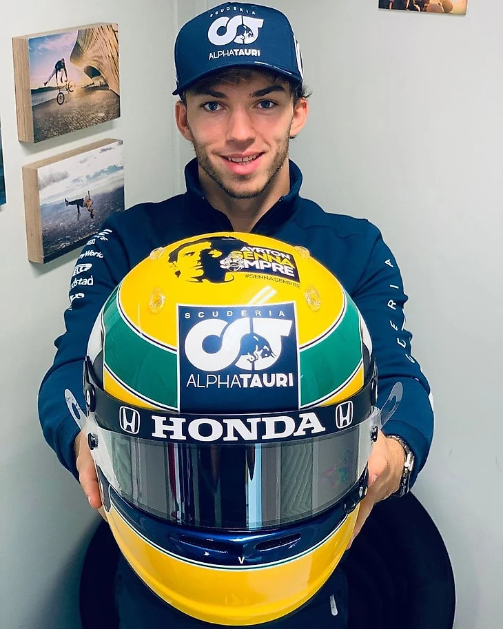Пьер Гасли решил, что на легендарной трассе, где погиб Сенна - будет символично надеть шлем в его память.