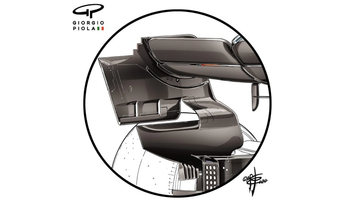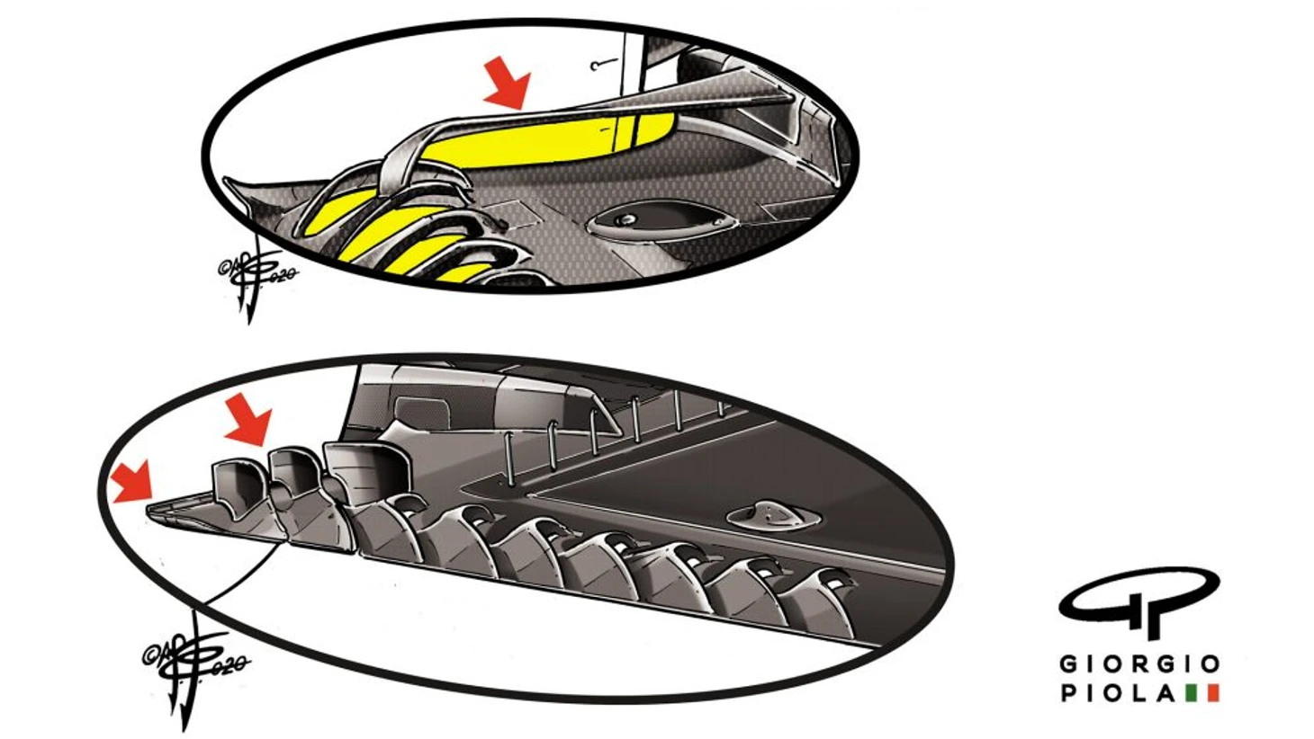 Эта комбинация включала в себя боковые дефлекторы, нос, поворотные лопасти, представленные на Нюрбургринге, а также иные прорези в днище, с которыми они выступали в гонке в Португалии. Команда использовала три вертикальных «плавничка» перед задней шиной вместо прежней схемы 2020 года, состоящей из одного большего цельного (см. иллюстрацию ниже в этой части). Они были объединены с оригинальным диффузором болида, а не с модифицированным диффузором, который испытывался (но не участвовал в гонках) в Портимао.