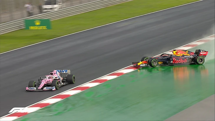 Шины износились почти у всех лидеров. И внезапно Стролл начал отрываться от Переса. Теперь уже между двумя «Рейсинг Пойнт» 4 секунды.