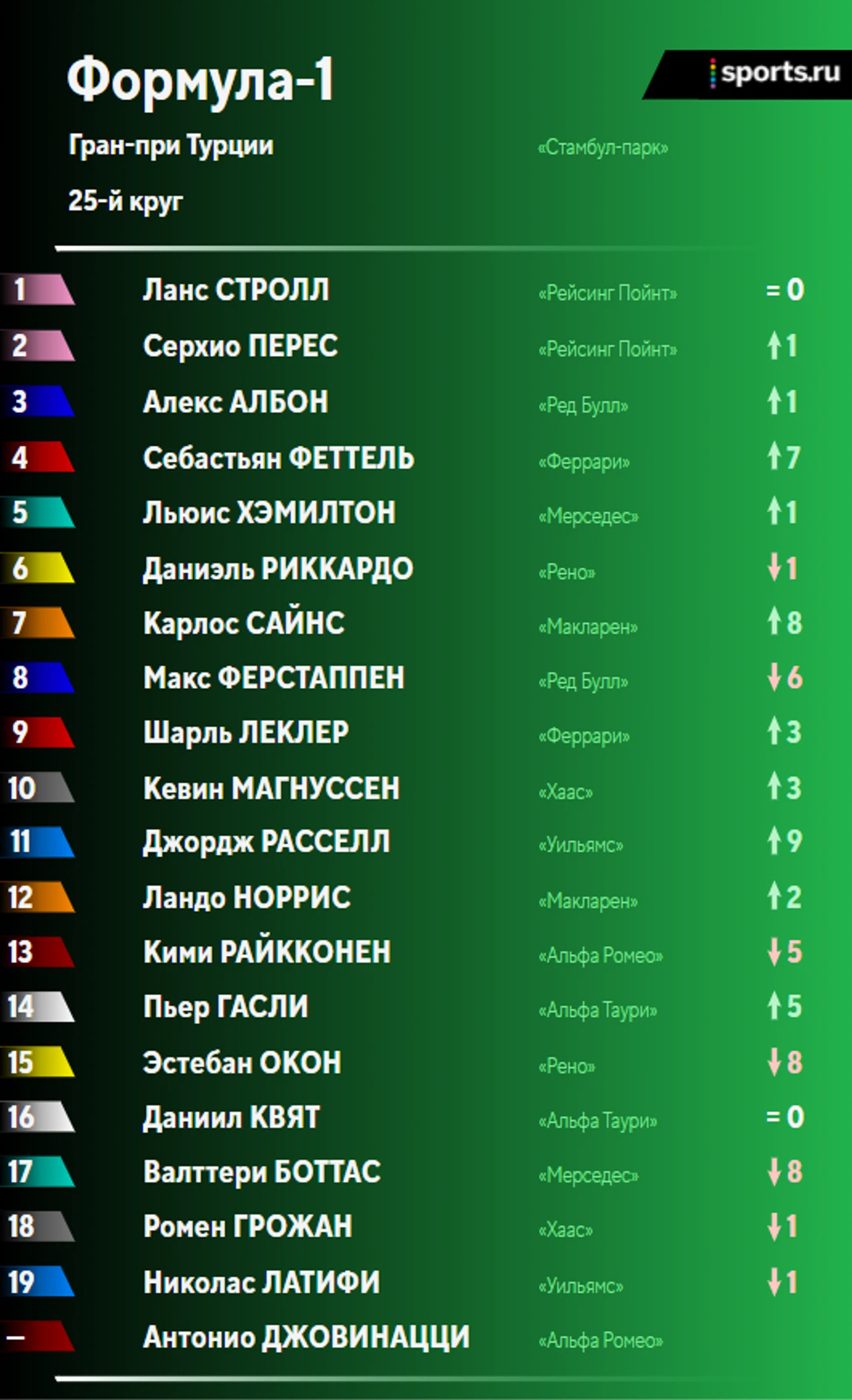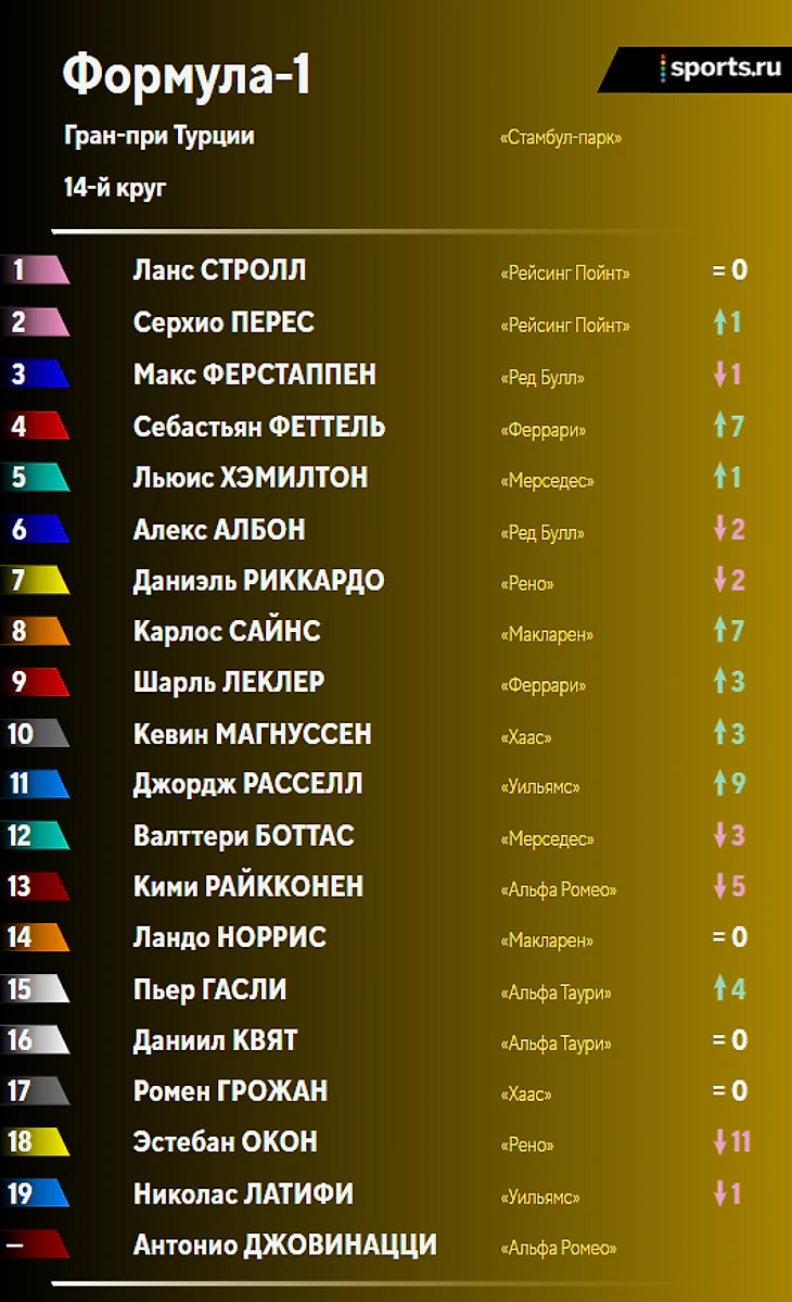 Падение Стролла продолжается – теперь его обогнал Сайнс.