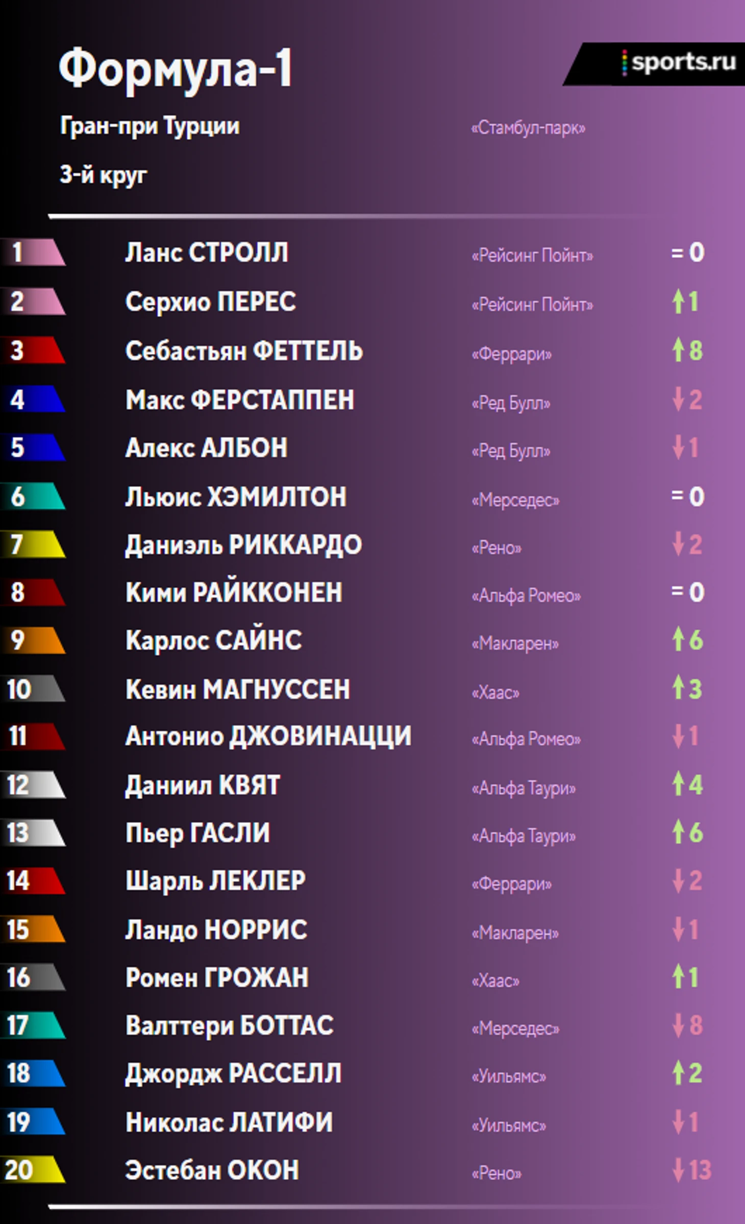 Лидируют две «Рейсинг Пойнт», а третий – Феттель!
