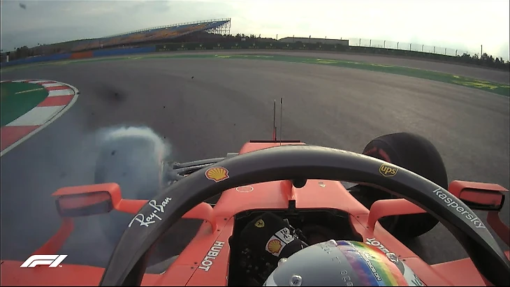Мощнейшее торможение в «Ф-1» – до разлета ошметков шин во все стороны. Это Феттель заблокировал колесо «Феррари»