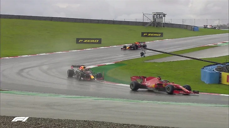 Первый круг Себ закончил вовсе третьим – проскочил мимо вылетевшего за пределы трека Хэмилтона. А дальше как будто вернулся в 2008-2009 годы, когда его называли новым «человеком дождя». Держать темп настроенных на влажную трассу машин «Рейсинг Пойнт» немцу ожидаемо не удалось, но бесновавшегося Макса Ферстаппена четырехкратный чемпион мира уверенно держал позади.