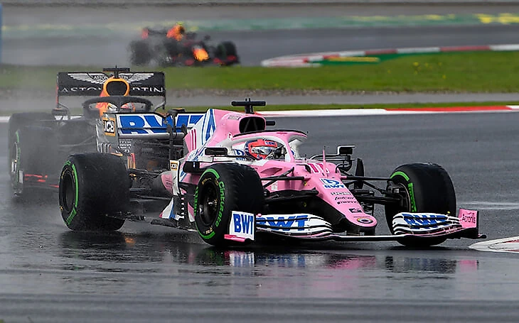 Но как же прогреть покрышки на таком скользком асфальте, да еще и в дождь? Нужно выбрать идеальный баланс между резкими разгонами и торможениями (для передачи температур от колодок), а также добавить ровно нужный уровень прижимной силы. Причем не все команды даже с бюджетами в сотни миллионов разобрались с требованиями «Пирелли» по нагрузкам – как раз здесь в роли флагмана и выступил «Рейсинг Пойнт», давно и много изучающий поведения резины.