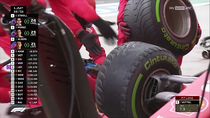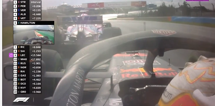 Однако на шестом круге ситуация развернулась: покрышки Стролла перегрелись, и Перес начал догонять его, снимая по 0,3-0,5 секунды с петли. №11 достал бы напарника, если бы не не первая волна пит-стопов: весь пелотон получил свежие «промежуточные», но из-за медленной остановки в боксах (4,9 секунды – обычно в «Ф-1» за такое время «переобувают» две машины) Чеко уже улетел назад на 10 секунд и оказался позади группы из Ферстаппена, Феттеля и Хэмилтона. Пришлось перестраивать планы и обороняться.