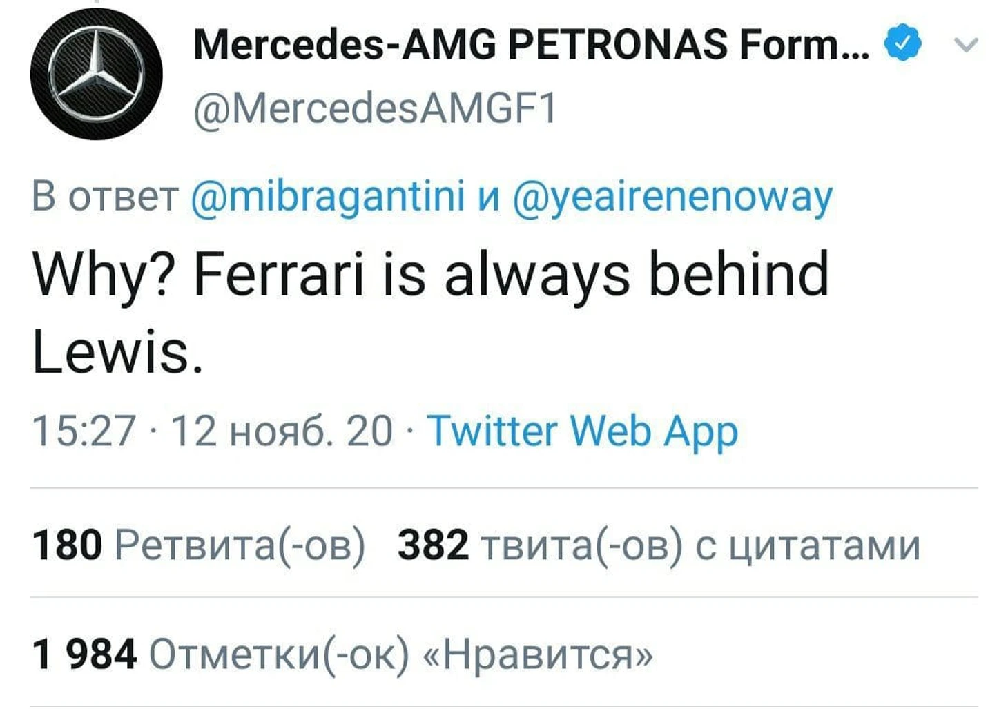 Но вот борец за всё хорошее как-то не поспешил с критикой свободы слова и равноправия в арабских странах. Хмммм почему же. Башни Петронас, которые спонсоры Мерса, где находятся? А главный спонсор Ф1 откуда? Ну вот. Классическая претензия ко всем борцам про «съездите в мусульманские страны» как всегда бесподобна!
