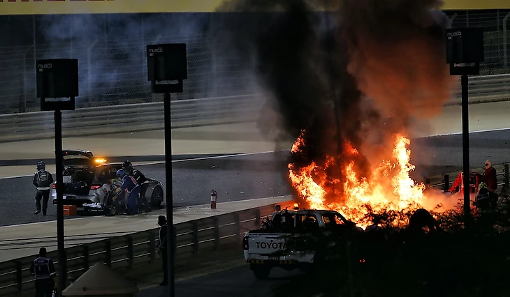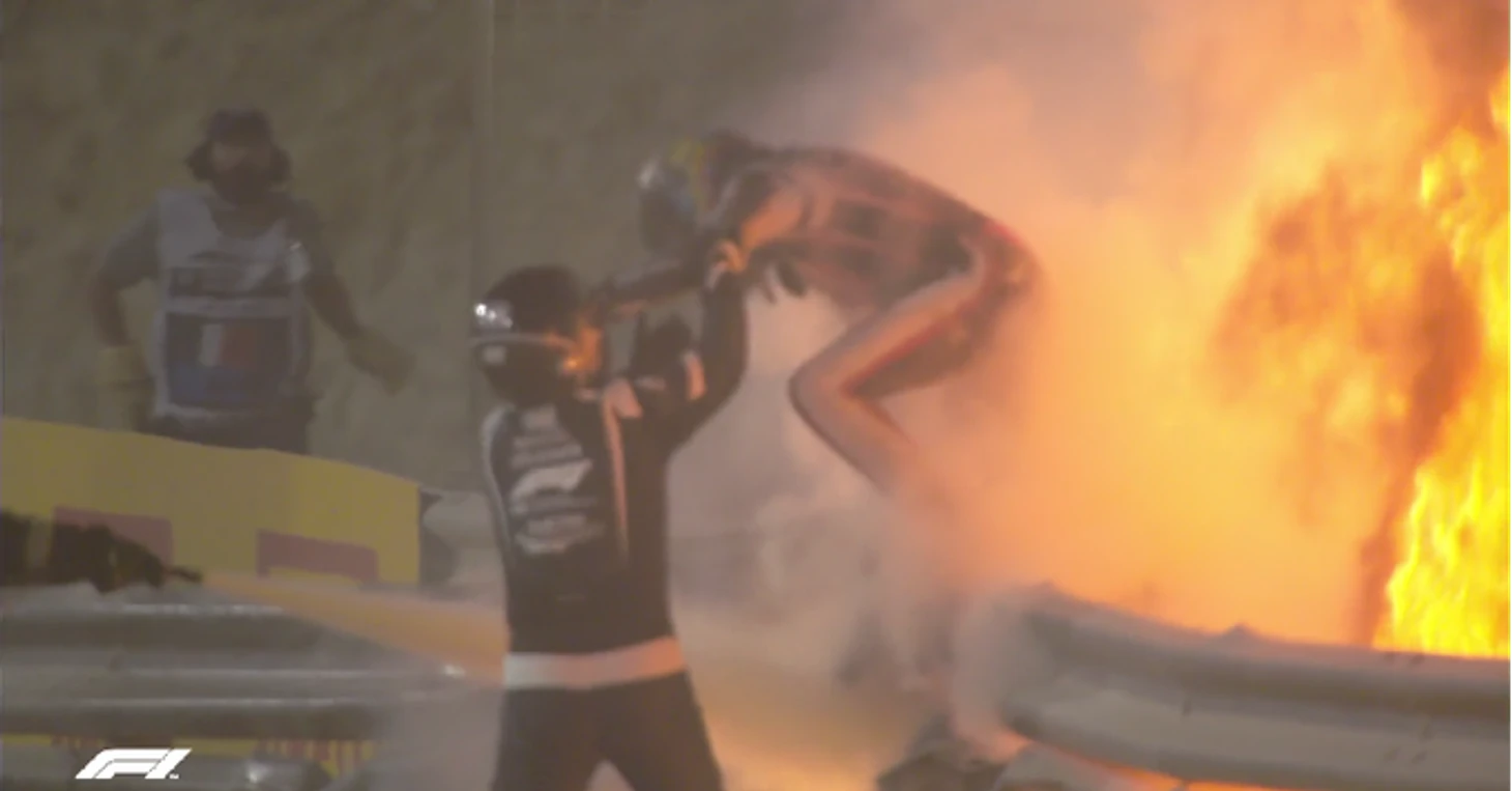 Грожан находился непосредственно в этом огне буквально пару секунд назад. Вообще, волосы дыбом от таких сцен...