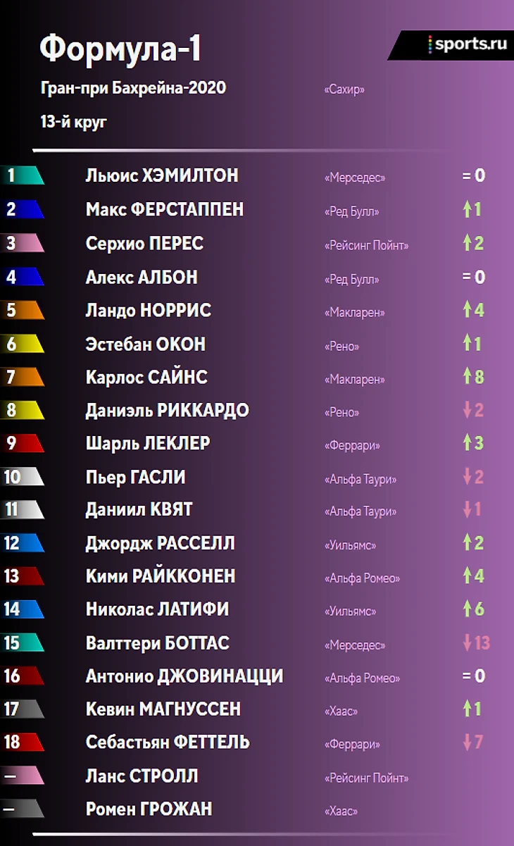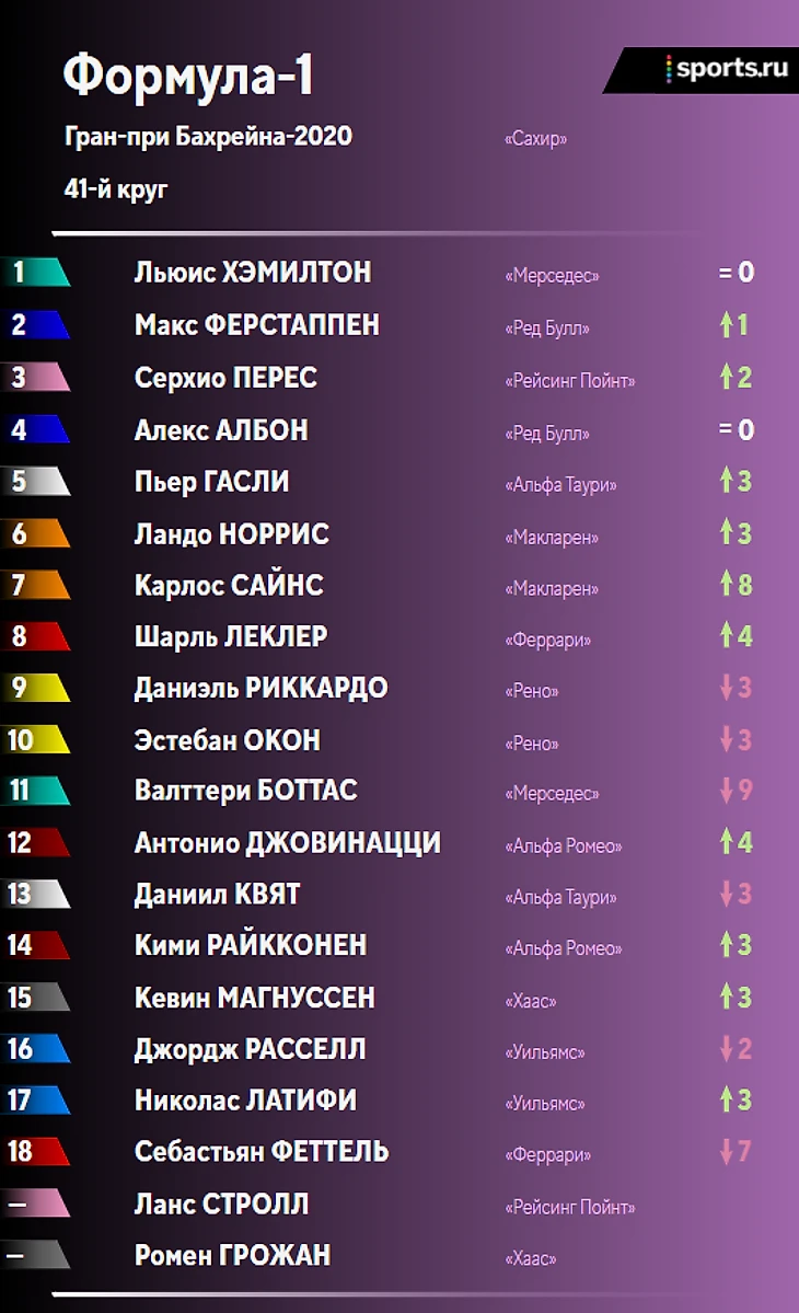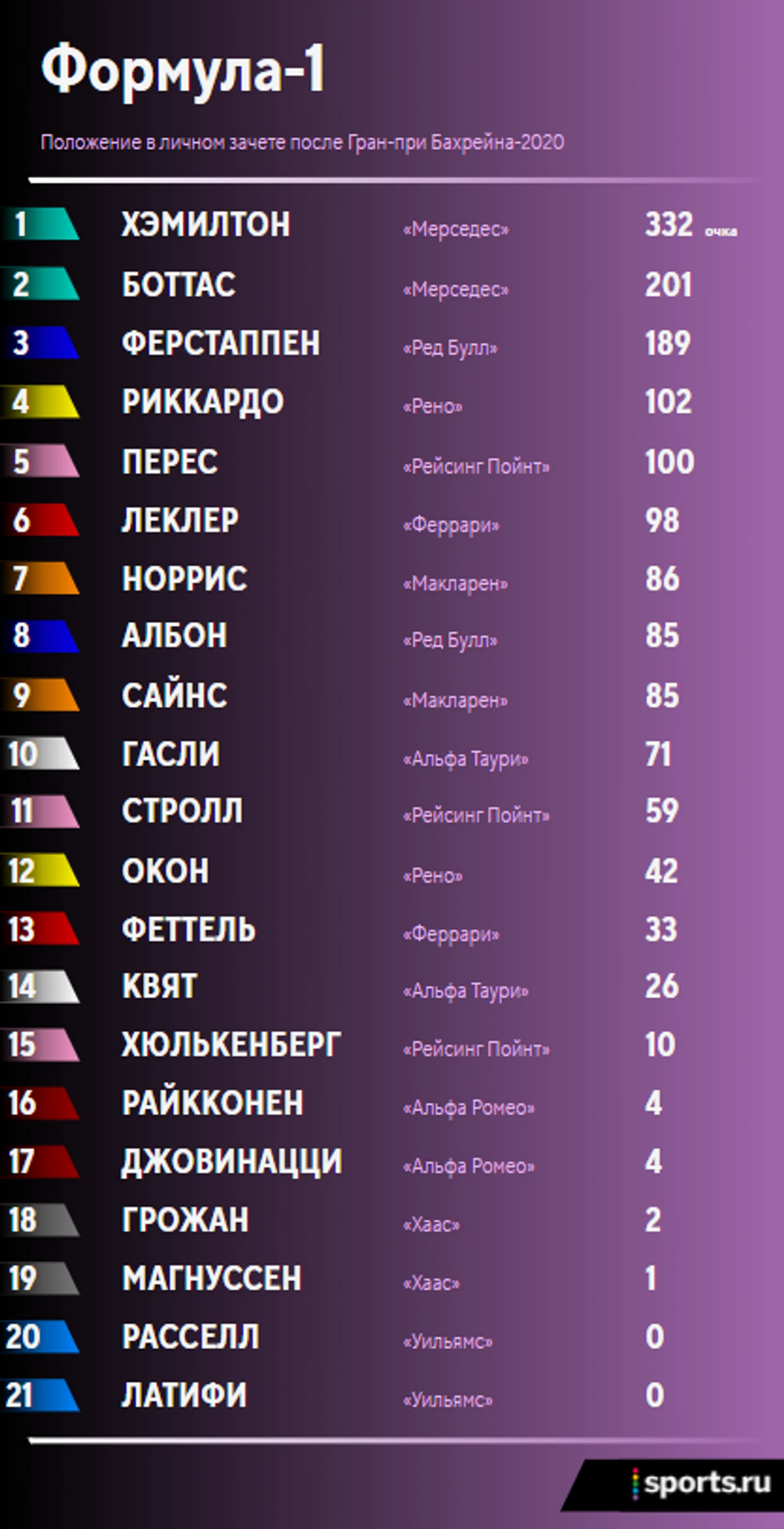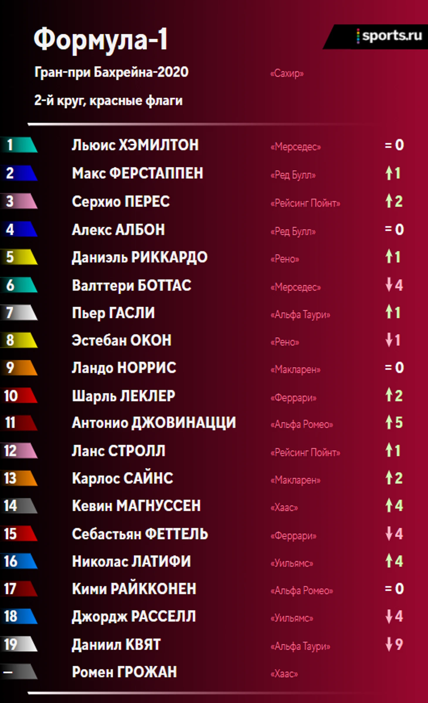 20:19 Все на этом! Чуть ниже – таблички. До встречи в следующие выходные – будет еще одна гонка в Бахрейне, но на необычной по своей конфигурации трассе!