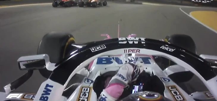 Сход Леклера и Ферстаппена в стартовой аварии частично и поправил положение мексиканца: ему не пришлось отыгрывать на трассе все 20 секунд отставания от пелотона благодаря выезду автомобиля безопасности. Но все равно Чеко потребовалось быстро гнать, доставая Кими Райкконена – и в том же злополучном третьем повороте №11 заблокировал не успевшую прогреться шину и оставил на ней ощутимую проплешину.