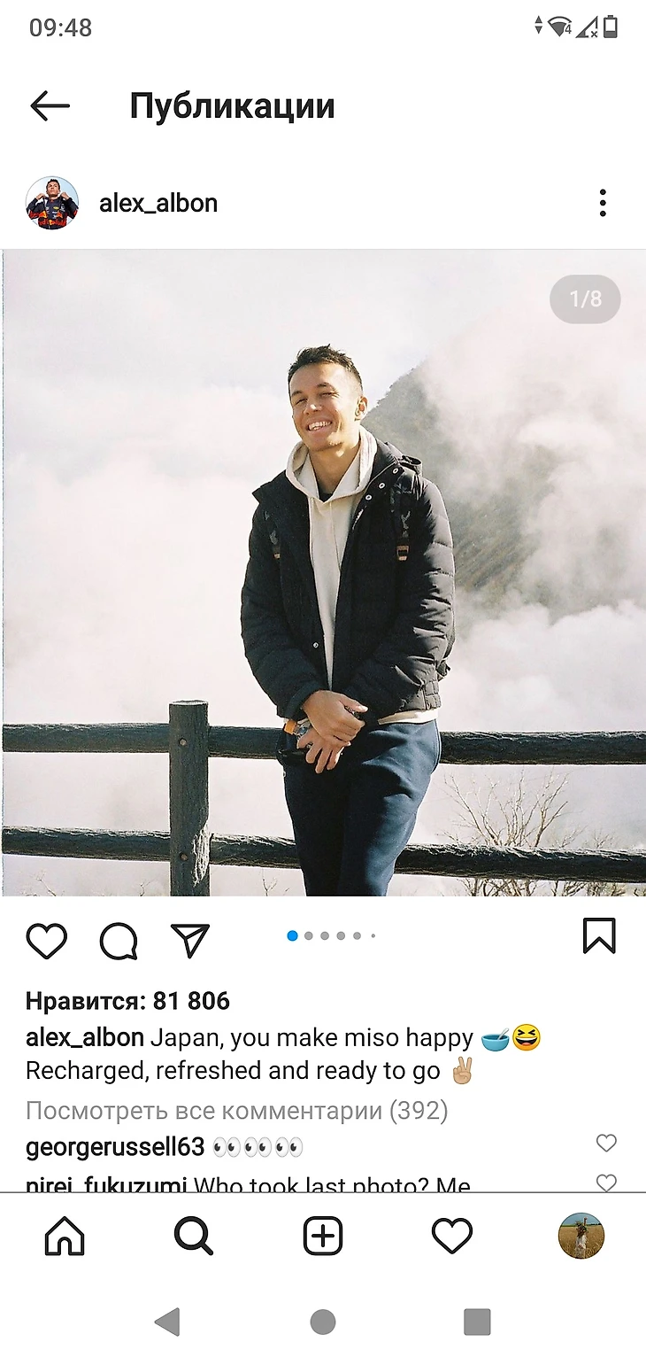 Конечно, у тайского гонщика есть и свой аккаунт. Там тот же "гоночный контент", но как и у Джорджа Расселла, много улыбок и частицы "внегоночной" жизни. Впрочем, все как и на трассе: мило, по-доброму, но как-то несерьезно для гонщика.