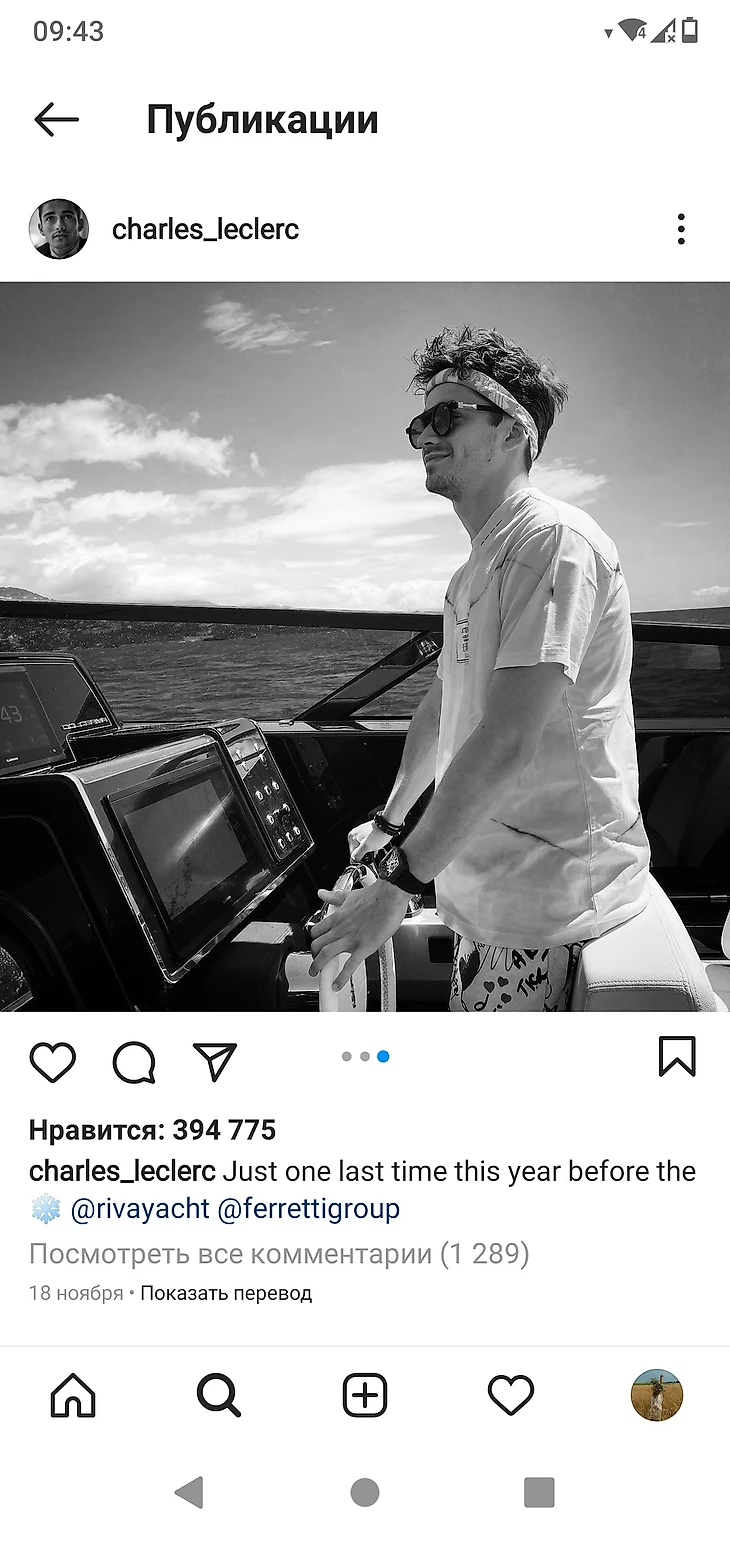 Да и вообще, страница в Instagram у будущего чемпиона Ferrari достаточно привлекательная. В меру выдержанная, как говорится, "с чувством, с толком, с расстановкой". Тут можно провести аналогию со стилем пилотажа Леклера. В меру спокойный, а бывает "как выстрелит" (инцидент на первом круге на Гран-При Сахира, например), но в то же время точно в цель и ничего лишнего.