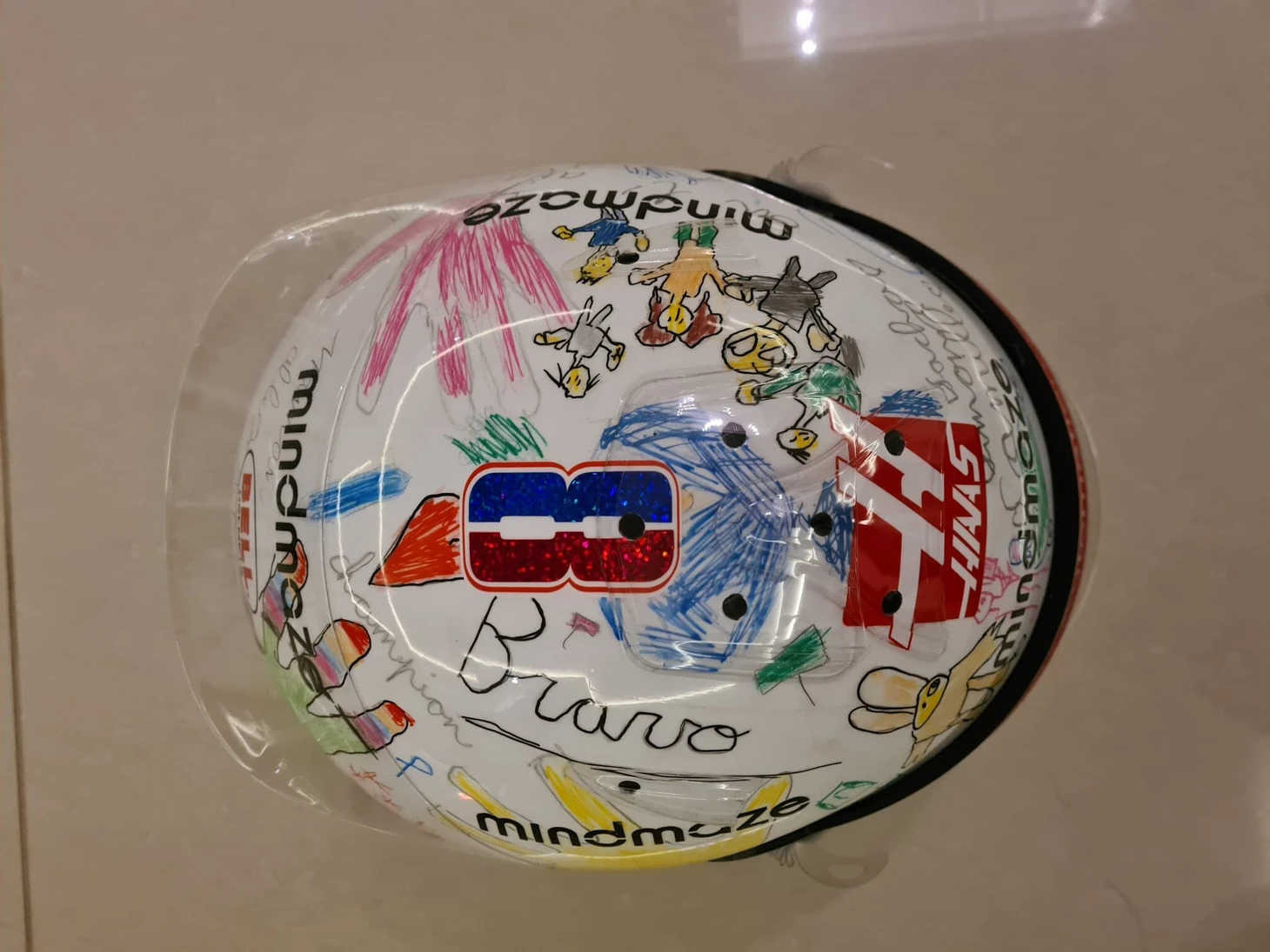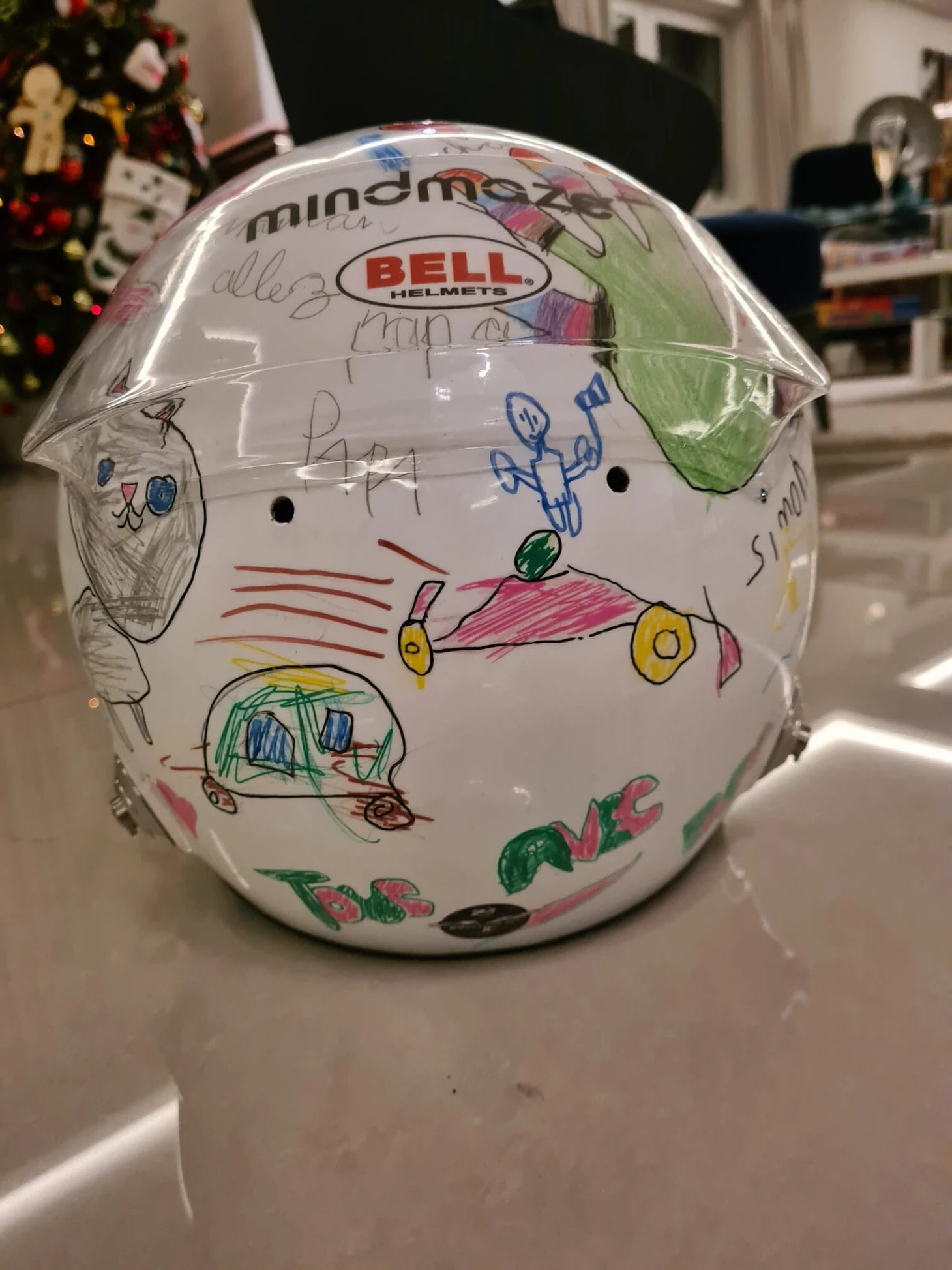 Возможно, самый трогательный шлем в истории, и неважно, что его так и не используют в гонке. Самое главное, что Ромен цел – в том числе благодаря своим детям.