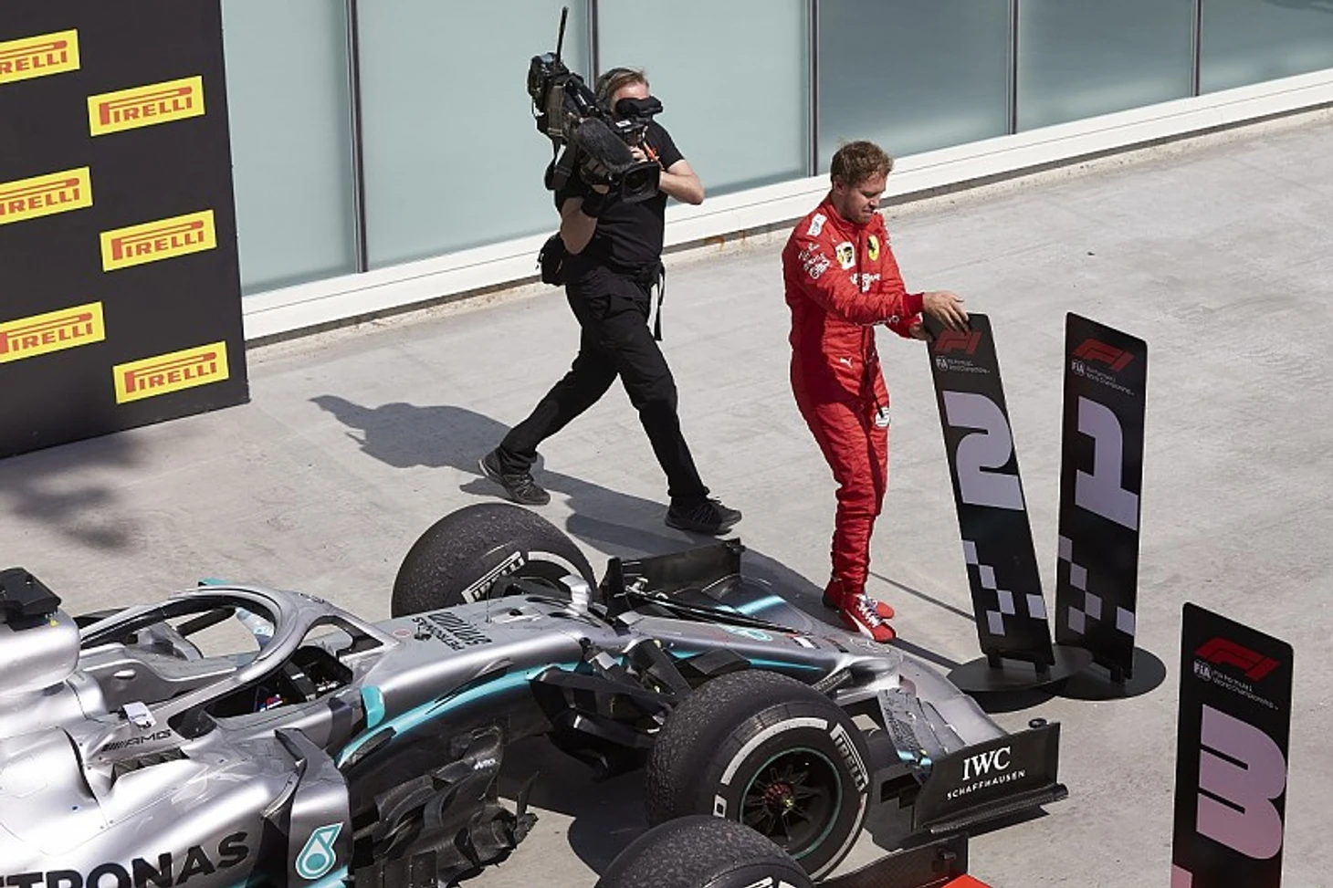 Феттель не выдержал давления со стороны Хэмилтона, срезав поворот и вернувшись опасно на трассу. С учётом штрафа он переместился на вторую позицию.