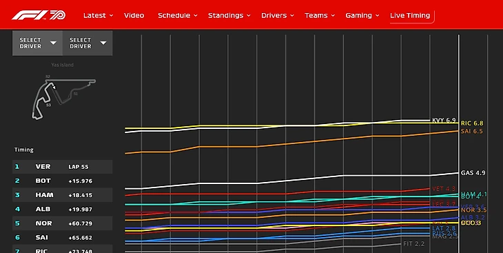 После каждой гонки на официальном сайте «Формулы-1» в разделе лайвтайминга на странице «выступлений» публикуются оценки пилотам за Гран-при по данным телеметрии. Вот – рейтинг после Гран-при в Абу-Даби.