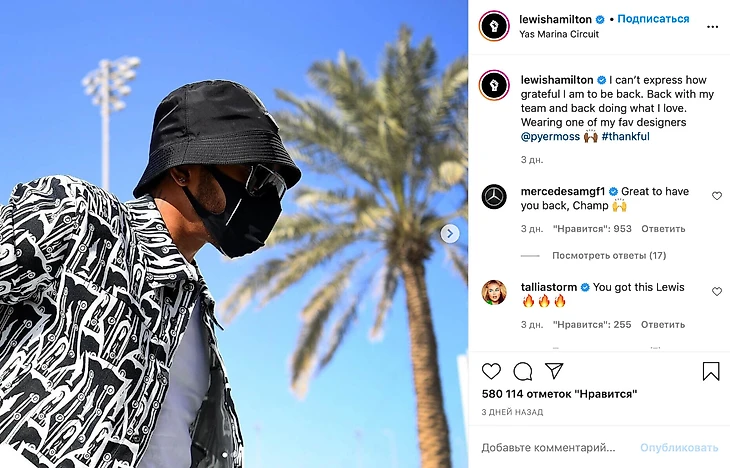 Похоже, стильно появление Хэмилтона на последней гонке сезона и есть еще одна возможность напомнить об проблемах в обществе. Или ему просто понравился костюм?