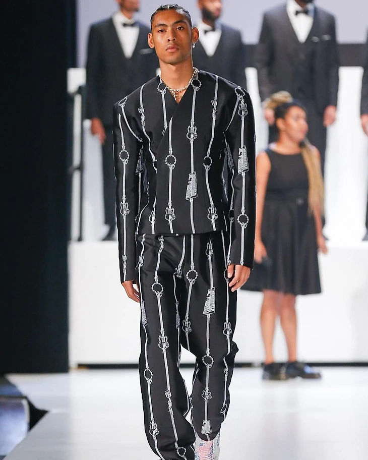 Костюм Льюиса из коллекции под названием «Сестра» (входит в трилогию American, Also, которая посвящена жизни и постоянному ущемлению прав темнокожих американцев) подчеркивает вклад сестры Розетты Тарп – чернокожей женщины, создавшей сочетание евангельской музыки с электрогитарой в 1930-х и 1940-х годах (оно оказалось предшественником рок-н-ролла). Поэтому в коллекции прослеживается принт с гитарой (да-да, на костюме Льюиса тоже гитара, по крайней мере так сказано, на официальном сайте).