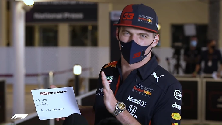 Пьер Гасли («Альфа Таури»): «Первое: Льюис станет секмикратным чемпионом мира. Второе: «Хонда» добьется минимум 5 побед – у нас их две [затем Ферстаппен одержал третью в Абу-Даби – видео явно записывалось до финиша Гран-при]. Одна у нас, одна – у «Ред Булл». А еще «Ред Булл» побьет рекорд по скорости пит-стопа [комментарий интервьюера: они сделали это]. И последнее: «Альфа Таури» проведет лучший сезон в Ф-1 – и мы это сделали. Да, это наш первый сезон, но даже с учетом 15 лет «Торо Россо» это наш лучший сезон».