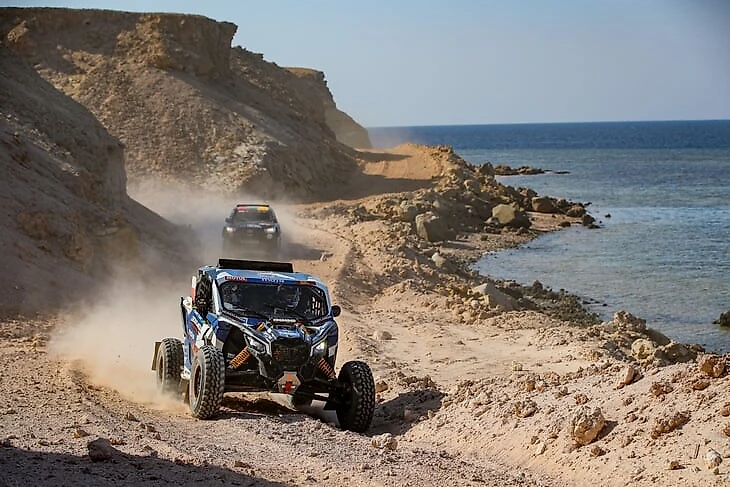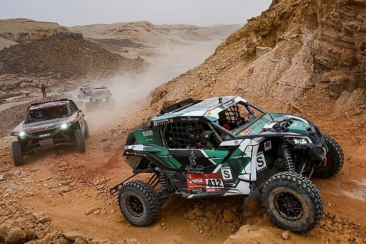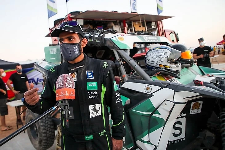 Салеф – лучший раллист королевства в классе багги, хоть и начал активно ездить на легковесных спортпрототипах лишь пару лет назад. На «Дакаре» он дебютировал в 2020-м (одновременно с первым рейдом на территории Саудовской Аравии) и финишировал 12-м. В принципе, такой результат для новичка в первый же сезон можно назвать успехом – и министерство спорта решило его развить: для Кубка мира по бахам-2020 Аль-Салифу купили новый вездеход – улучшенный заводской Can-Am X3 T3PRO – и заключили эксклюзивный договор о поддержке с конторой, превратившей его в гоночного монстра. Посмотрите на его багги – там всюду исключительно эмблемы госкомпаний и аффилированных с ними мелких фирм вроде автодилерского салона, продающего крутые дорогие суперкары Samaco.