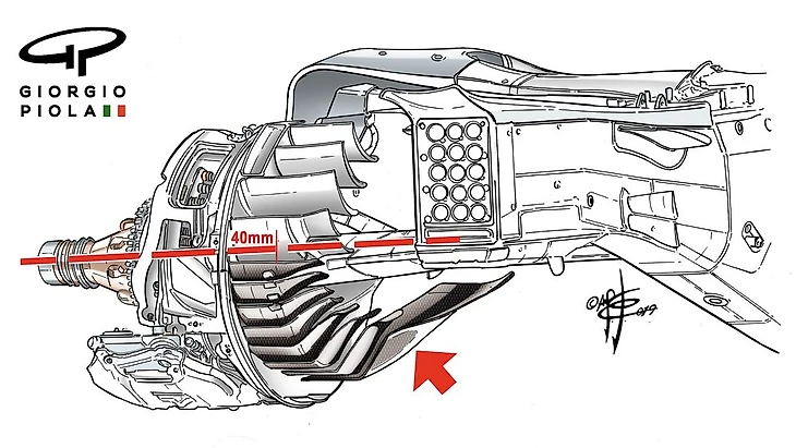 Изменения коснутся и винглетов заднего тормозного канала. Длина винглетов в нижней части воздуховодов будет уменьшена на 40 - 80 мм, в то время как верхние винглеты останутся 120 мм. Эти винглеты могут быть небольшими, но они решающим образом создают прижимную силу, которая подается непосредственно на колеса, и поэтому являются высокоэффективными.