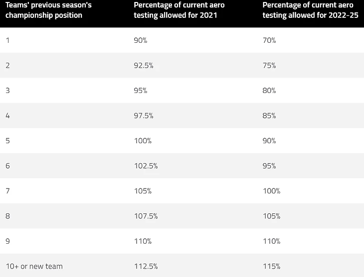 Проще говоря, чем ниже команда заняла место в таблице чемпионата 2020 года, тем больше времени у нее будет на то, чтобы отточить аэродинамику своего автомобиля 2022 года, будь то в аэродинамической трубе или с помощью моделирования вычислительной гидродинамики (CFD). Вы можете точно увидеть, как это работает, в таблице выше: «Мерседес» получит меньше всех времени, а вот «Уильямс» больше всех. Между тем, с 2022 года эти изменения станут еще более заметными.