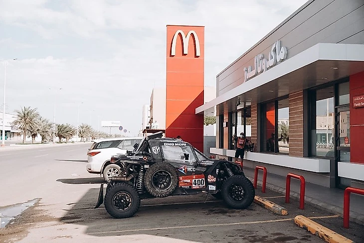 Иначе как еще объяснить вот эти кадры: команда русского чемпиона «Дакара»-2017 Сергея Карякина Snag Racing зарулила в «Макдональдс» в Саудовской Аравии сразу же после финиша рейда! Да, прямо на багги и в пыльных комбинезонах: