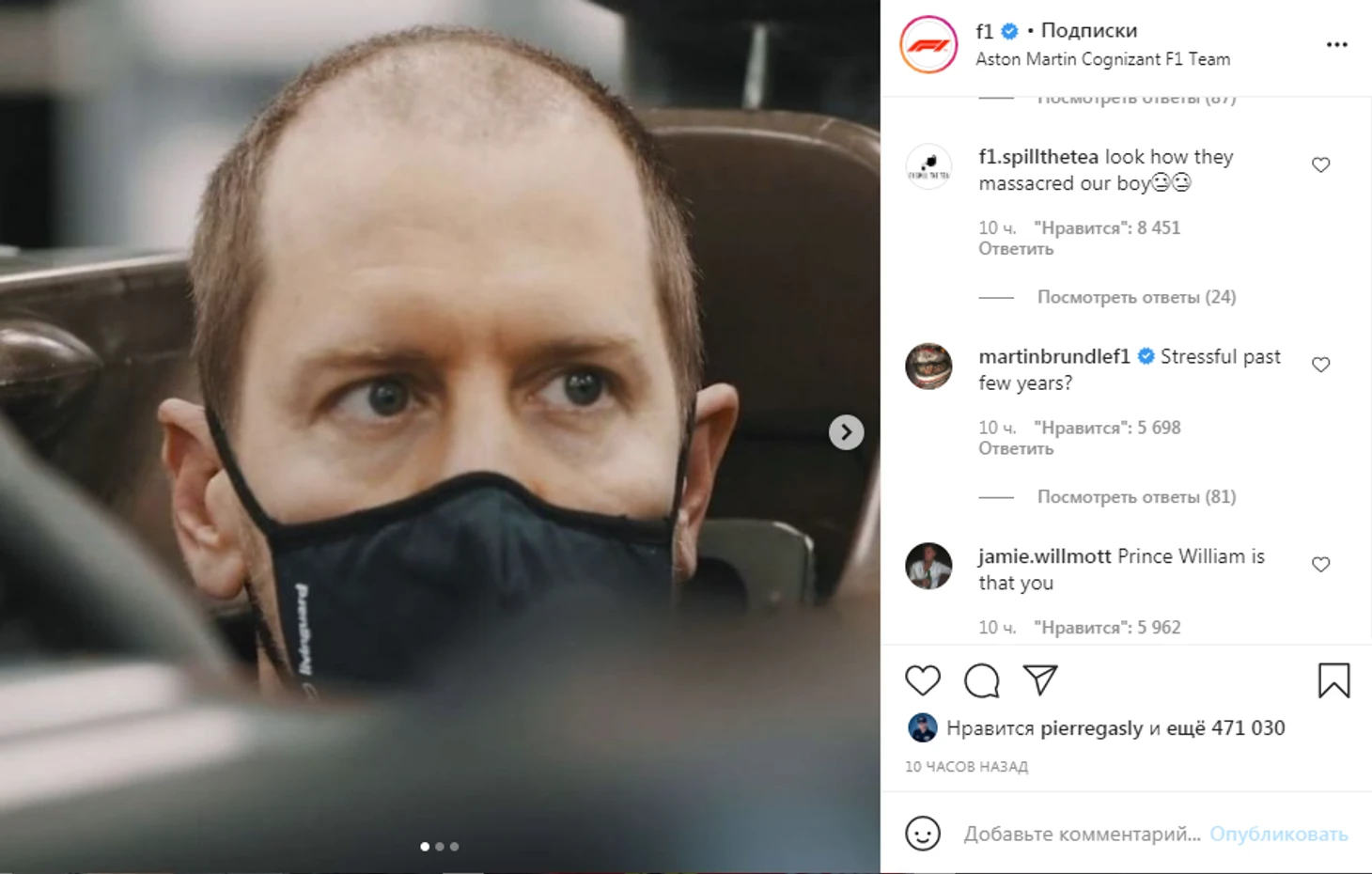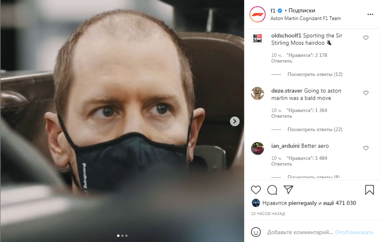 Но нет: 27 января вернувшийся в чемпионат «Астон Мартин» опубликовал ролик о посещении базы Себастьяном Феттелем. Четырехкратный чемпион приехал в Сильверстоун, познакомился с персонам, прошел подгонку сиденья – и засветил новый очень неожиданный образ.