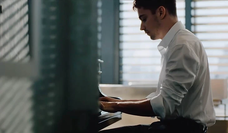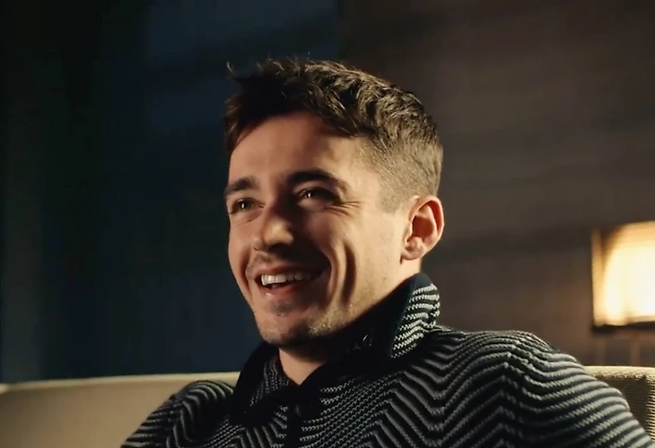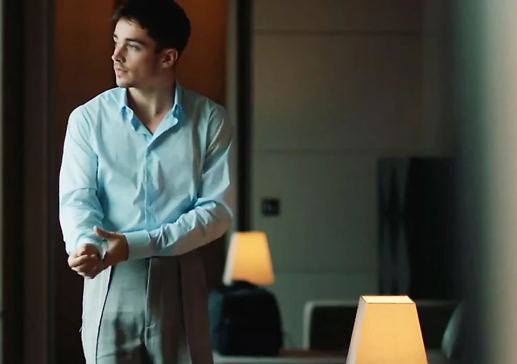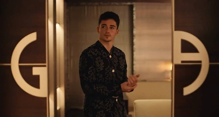 Шарль находится в пустом зале отеля «Армани», он одет в классический темный костюм. Говорит, как и положено гонщику Скудерии, на итальянском: «Меня зовут Шарль Леклер, я из Монте-Карло и я пилот «Формулы-1».