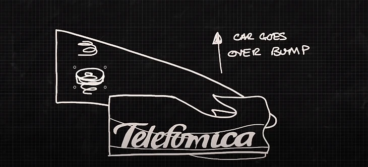 Однако их использование породило другую серьезную проблему. Когда болид «Ф-1» попадает на поребрик, подскакивает на почке или влетает в выбоину, шина сталкивается со значительными вибрациями. Обычно нос подбрасывает вверх, а потом он ныряет вниз – примерно 8-10 раз за секунду. Воздушный поток под антикрылом полностью теряет стабильность, и прижимная сила значительно снижается. В результате уровень сцепления меняется прямо в процессе преодоления поворота – и машина становится крайне непредсказуемой и сложной в управлении.