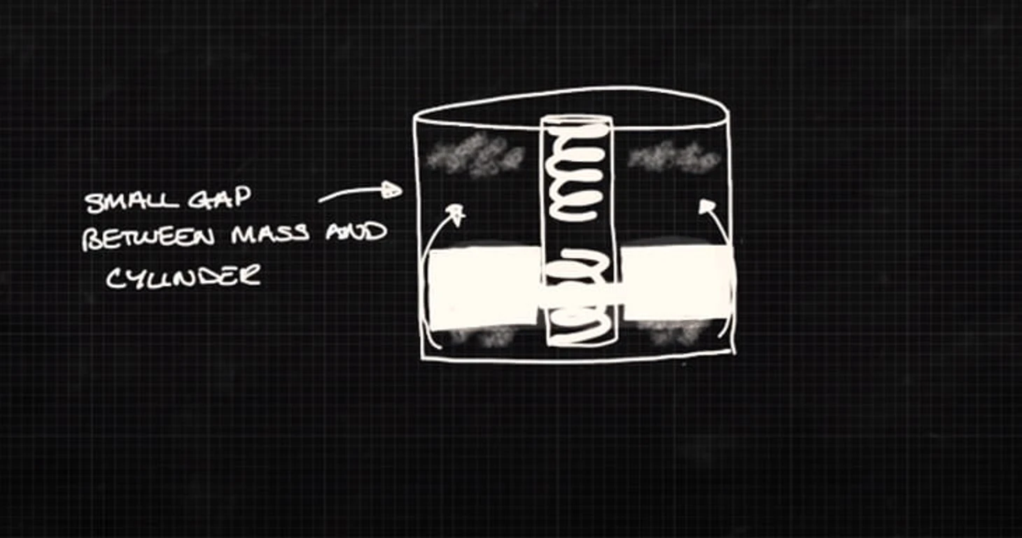 Без погашения вибраций уровень прижимной силы в поворотах может колебаться (вместе с носом болида) до 8 раз за секунду – от условных 400 до условных 600 кг (вместо условных стабильных 500 кг) в зависимости от положения антикрыла. И пилоту естественным образом приходилось сбрасывать скорость до таких величин, с которыми машина точно преодолела бы поворот при условии минимальной загрузки из всех возможных при вибрациях – чтобы ее не сорвало. То есть фактически болид способен генерировать 500 кг прижимной силы и потому ехать быстрее, но из-за нестабильности пилот едет медленнее – словно машина генерирует только условные 400 кг. Именно с этим эффектом и боролся демпфер масс.