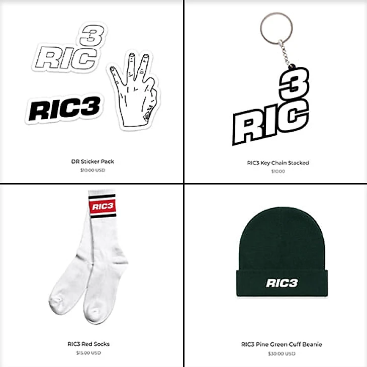 Возможно, дело в месте распечатки принтов для мерча: фирменные Ric3 отпечатывают в Чикаго – информация указана в самом магазине австралийца. Толстовка, в которой засветился Задоров, стоит 85$, а бейсболка – 35$. Кстати. набор «тотал блэк» все еще доступен к покупке. В коллекции также представлены брелки, набор стикеров, футболки, носки, шапки и минишлемы.