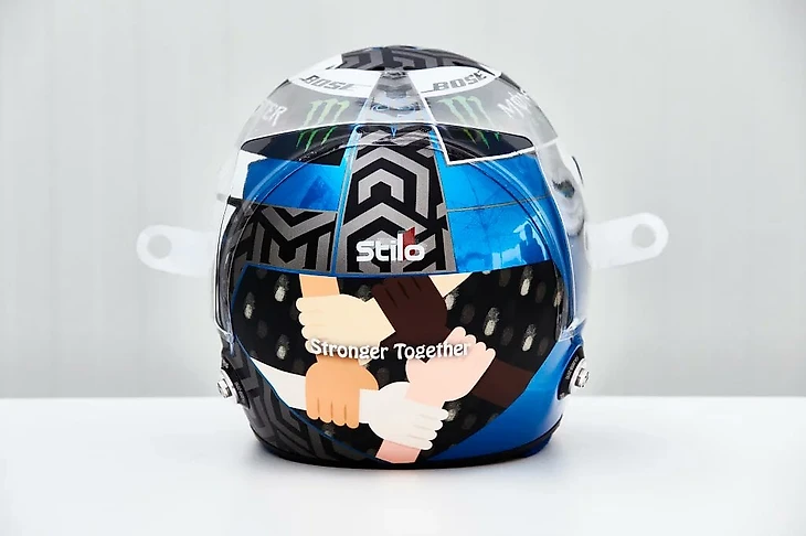 Шлем попал в тренд современной «Ф-1»: вопрос толерантности и человеческого отношения вне зависимости от внешних признаков был центральным в околоформульных новостях весь прошлый год, что отразилось на дизайне ливрей болидов и шлемов.