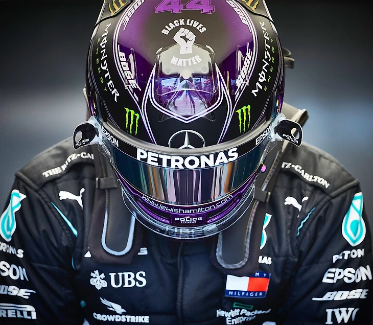 Фронтмен серии Льюис Хэмилтон не скрывал свою поддержку движению Black Lives Matter, основал комитет для продвижения темнокожих в автоспорте, а в этом году – специальный фонд вместе с «Мерседесом». И побеждал в таком шлеме: