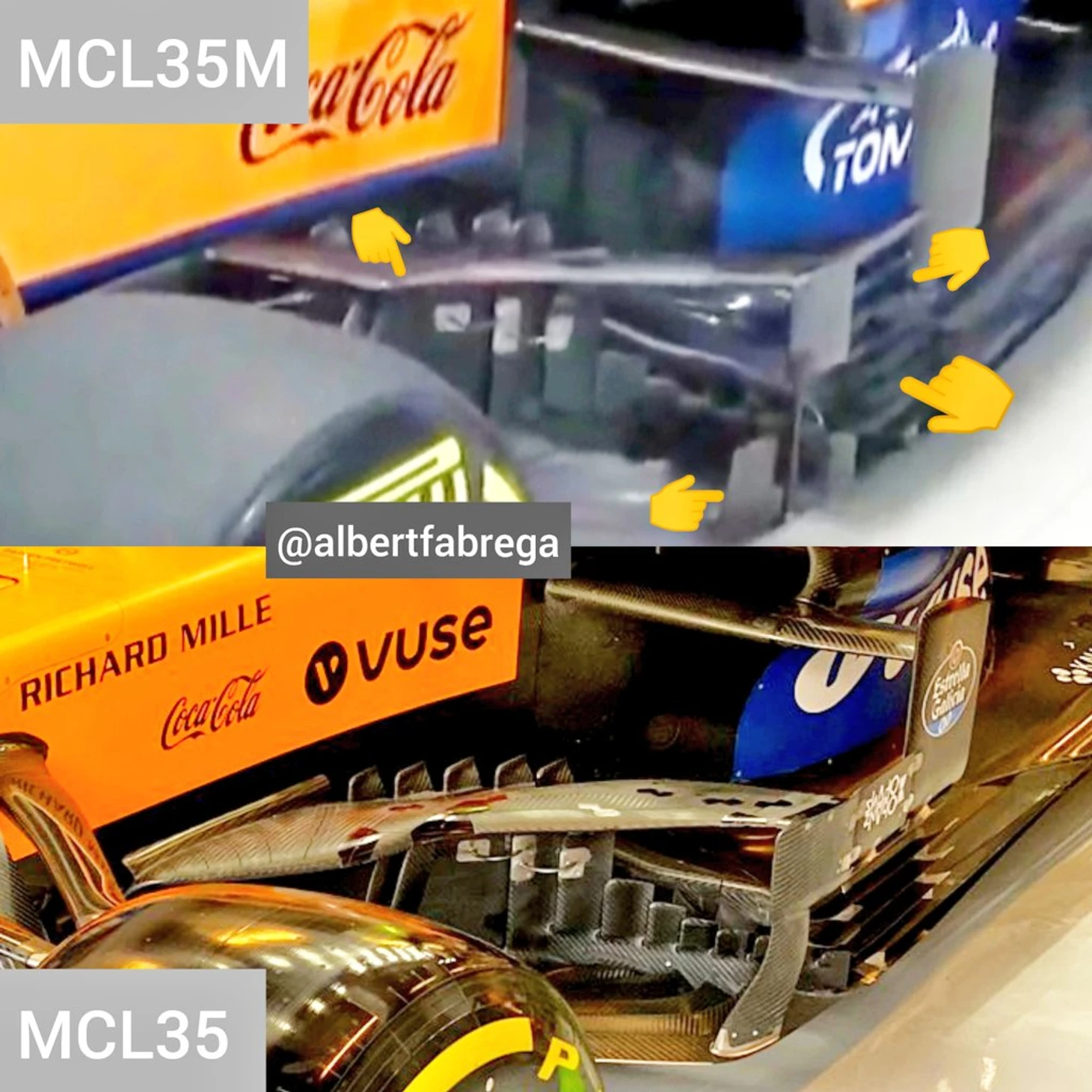 Также здесь можно увидеть и разницу в днищах между 2021-м и 2020-м. Кстати, «срезка» «Макларена» выглядит очень простой и даже примитивной – интересно будет сравнить с решениями других команд.