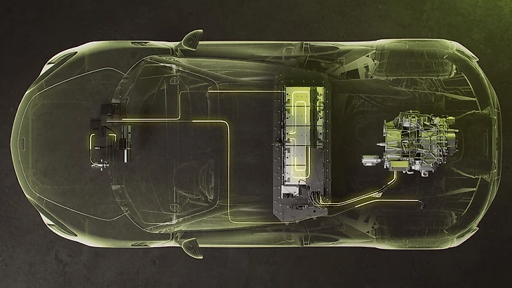 Что касается обычного двигателя, новинке достался трехлитровый V6 мощностью 585 л.с. с двойным турбонаддувом – суммарно выходит 680 л.с. А вот как выглядит их расположение.