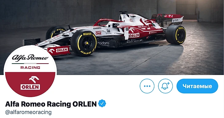 С точки зрения дизайна болида и значимости бренда «Альфа Ромео» – это слабое решение. Если только основной задачей действительно не стояло вывести Orlen на самые заметные позиции. Твиттер команды с официальным названием Alfa Romeo Racing ORLEN стал максимально польским: бело-красная иконка с такой же машиной.