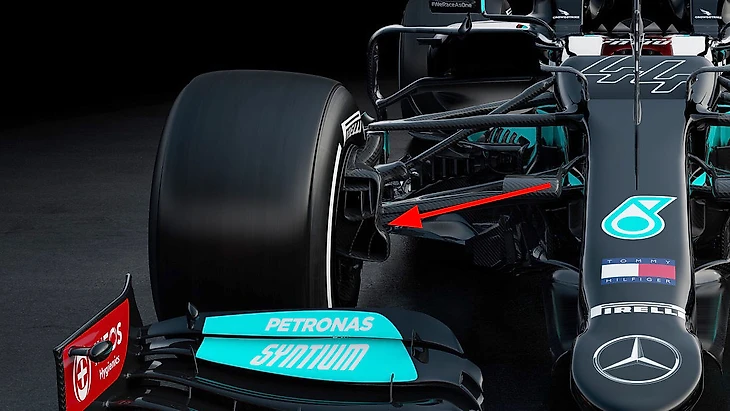 Помимо аэродинамики инженеры также посвятили себя подвеске и охлаждению. «Мерседес» пока не хочет раскрывать, куда он инвестировал свои два жетона развития. Это позволяет им в дальнейшем разрабатывать детали, которые на самом деле нельзя трогать.